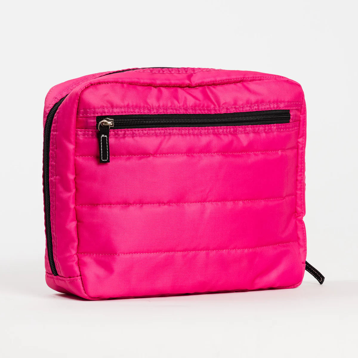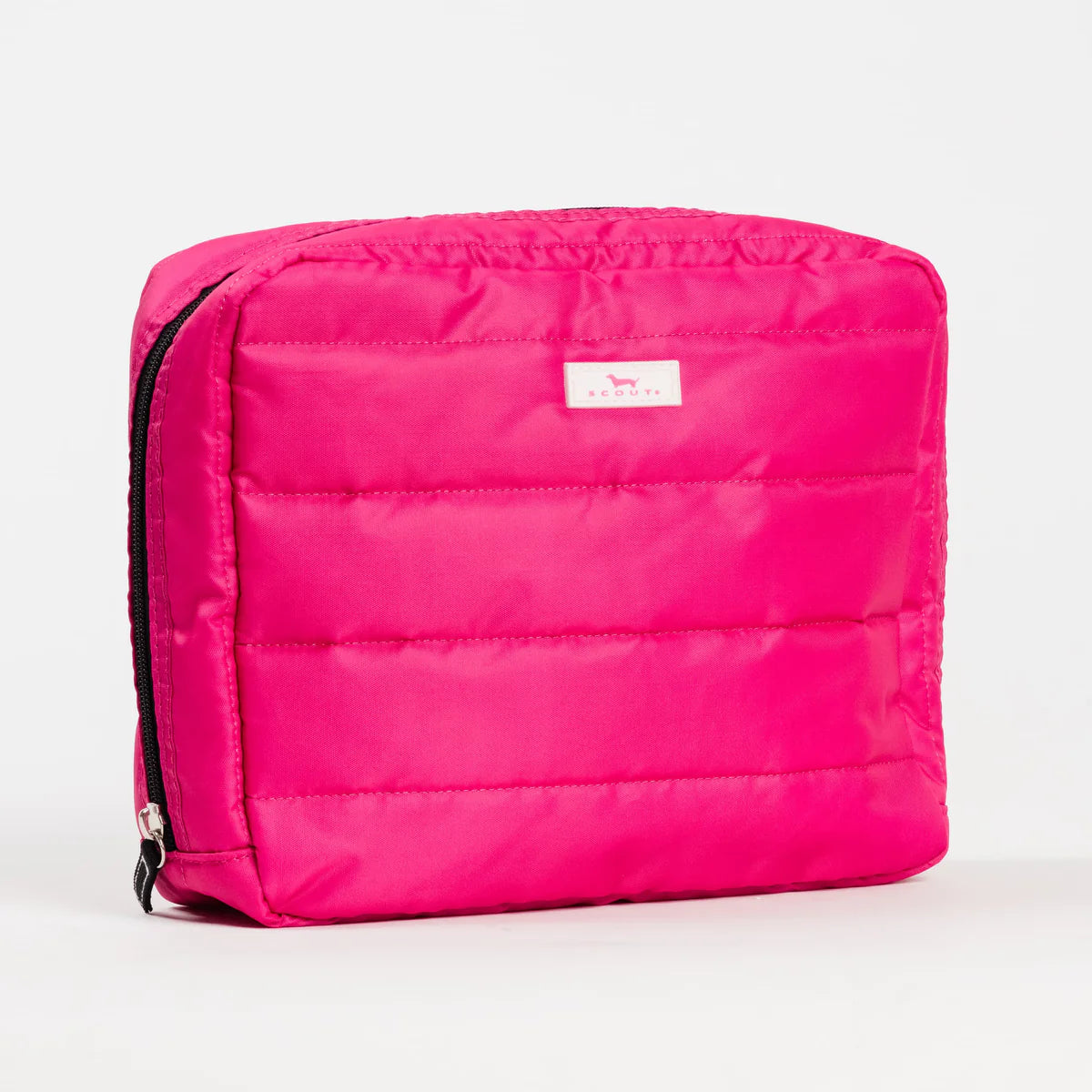 Expertly designed for on-the-go fashionistas, the Scout All Inclusive Puffer is a must-have travel accessory. Made with soft quilted fabric, it zips closed and features a convenient zipper compartment inside. With a stylish navy exterior and a pop of pink on the inside, it's as functional as it is fashionable. Travel smart with the Scout All Inclusive Puffer Bag. 10.5” W x 8.75” H x 3.5” D.