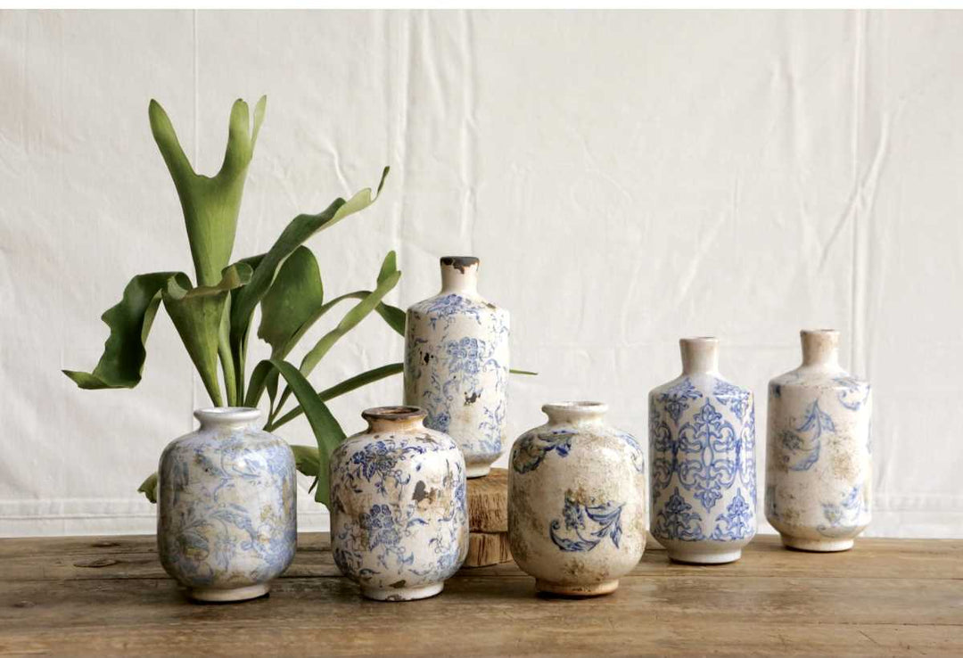 Blue Patterned Terra Cotta Vase