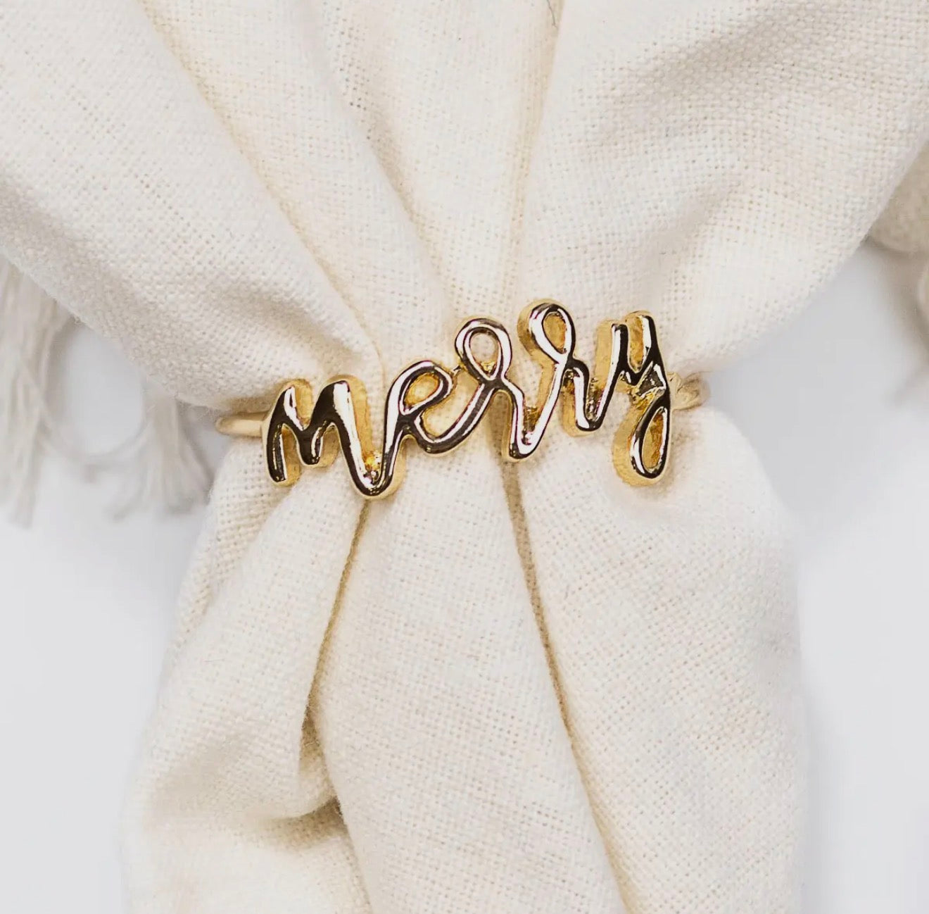 Add a touch of festive elegance to your holiday table with our Merry Gold Script Napkin Ring. Crafted from gleaming gold-finished metal, this 2” ring features the cheerful word “merry” in flowing script, bringing instant charm to your Christmas place settings. Perfect for pairing with classic linens or bold seasonal prints, it’s an effortless way to make every meal feel special.