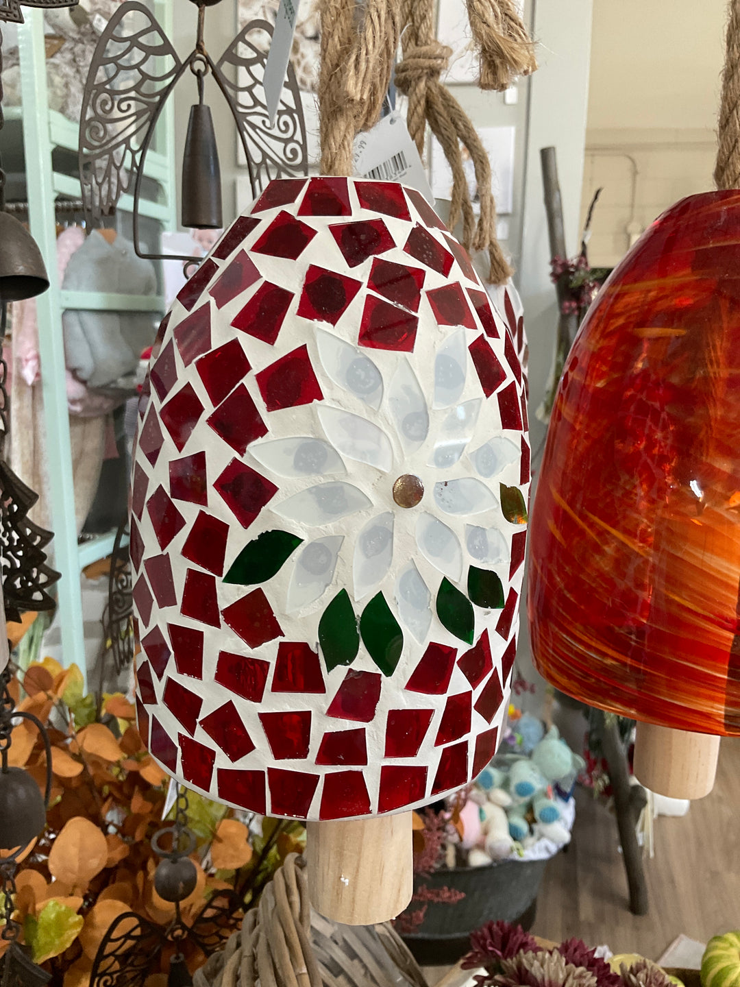 Red Poinsettia Mosaic Bell Chime