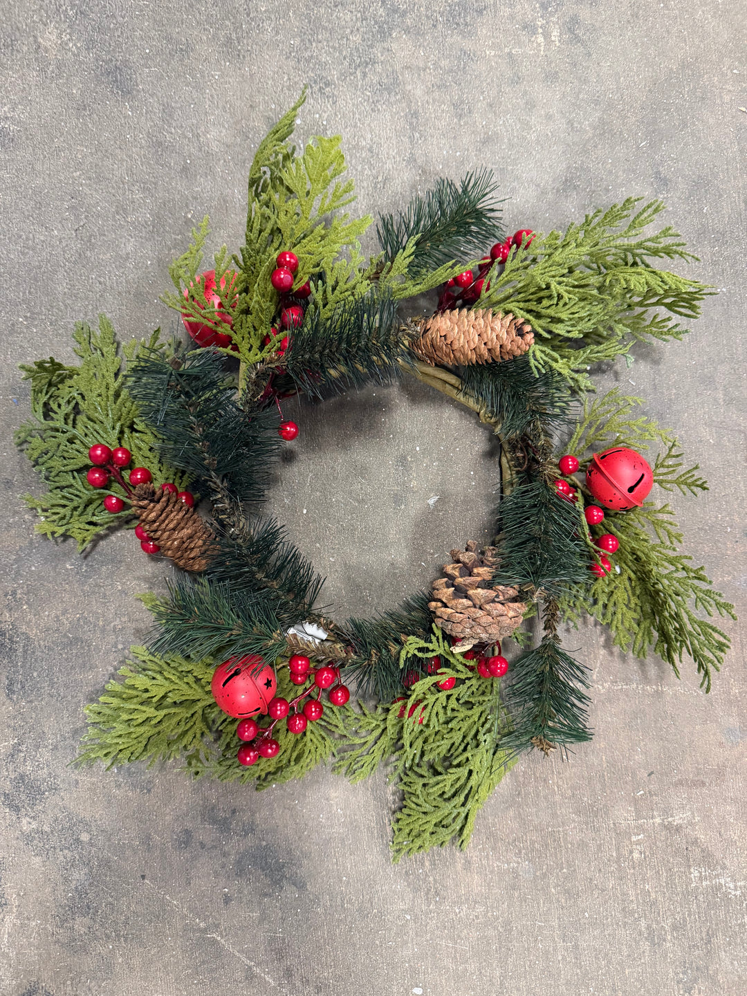 Rustic Pine & Berry Mini Wreath with Jingle Bells