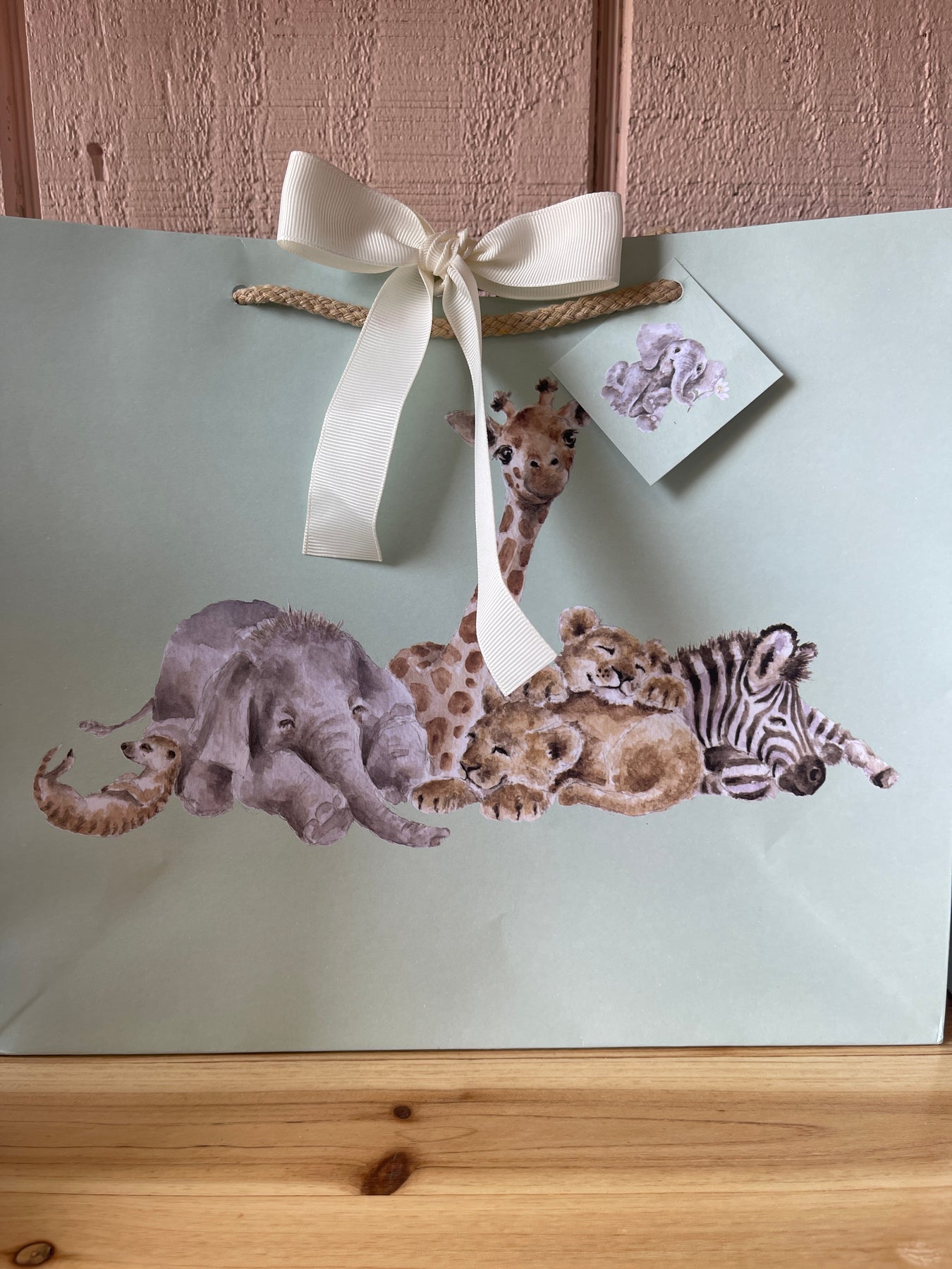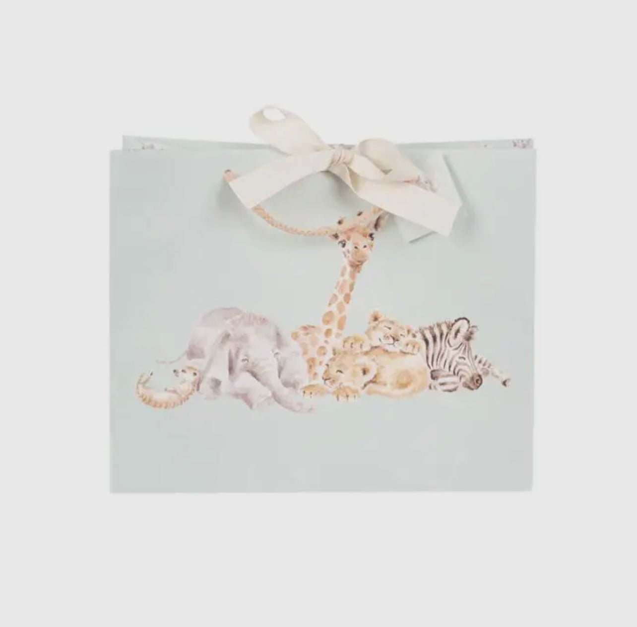 Each bag comes with a printed gift tag and a complimentary coloured grosgrain ribbon fastening. Printed on sustainably sourced board with a smooth finish, once the ribbon and rope handle have been removed, the bags are completely recyclable.