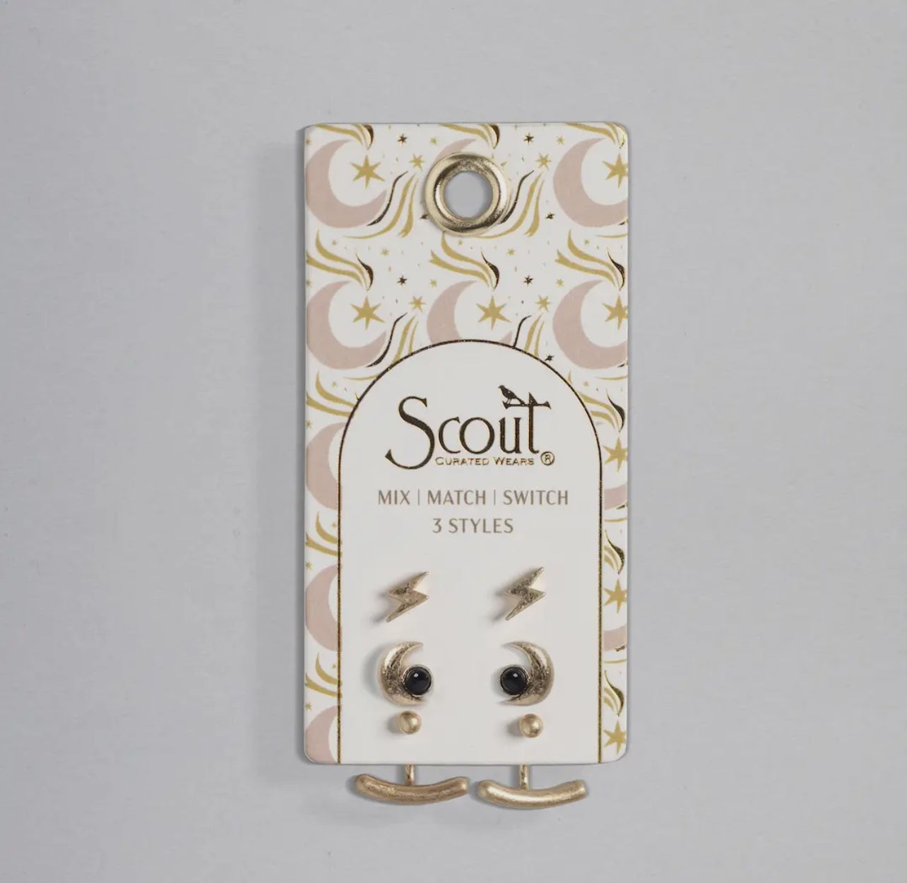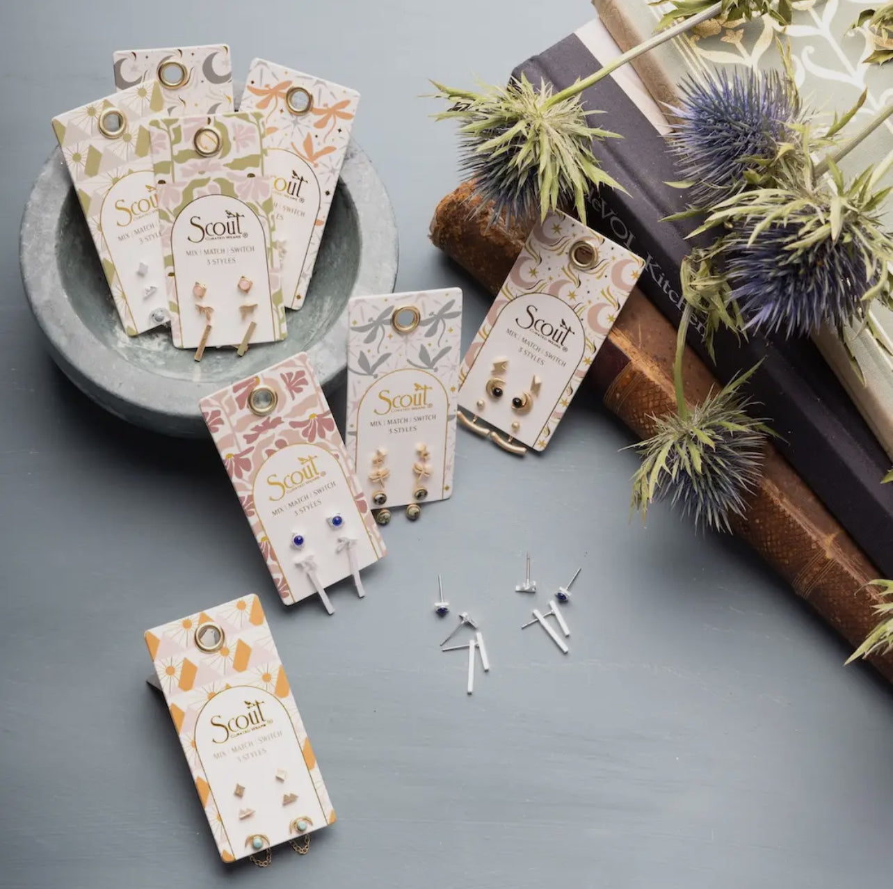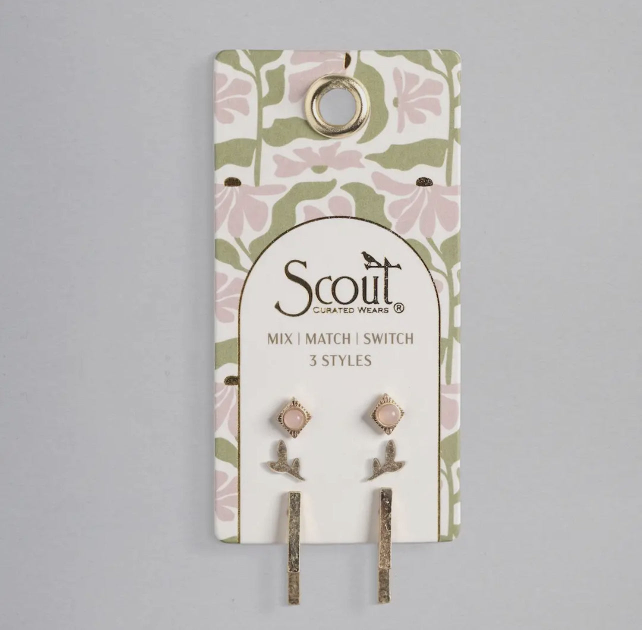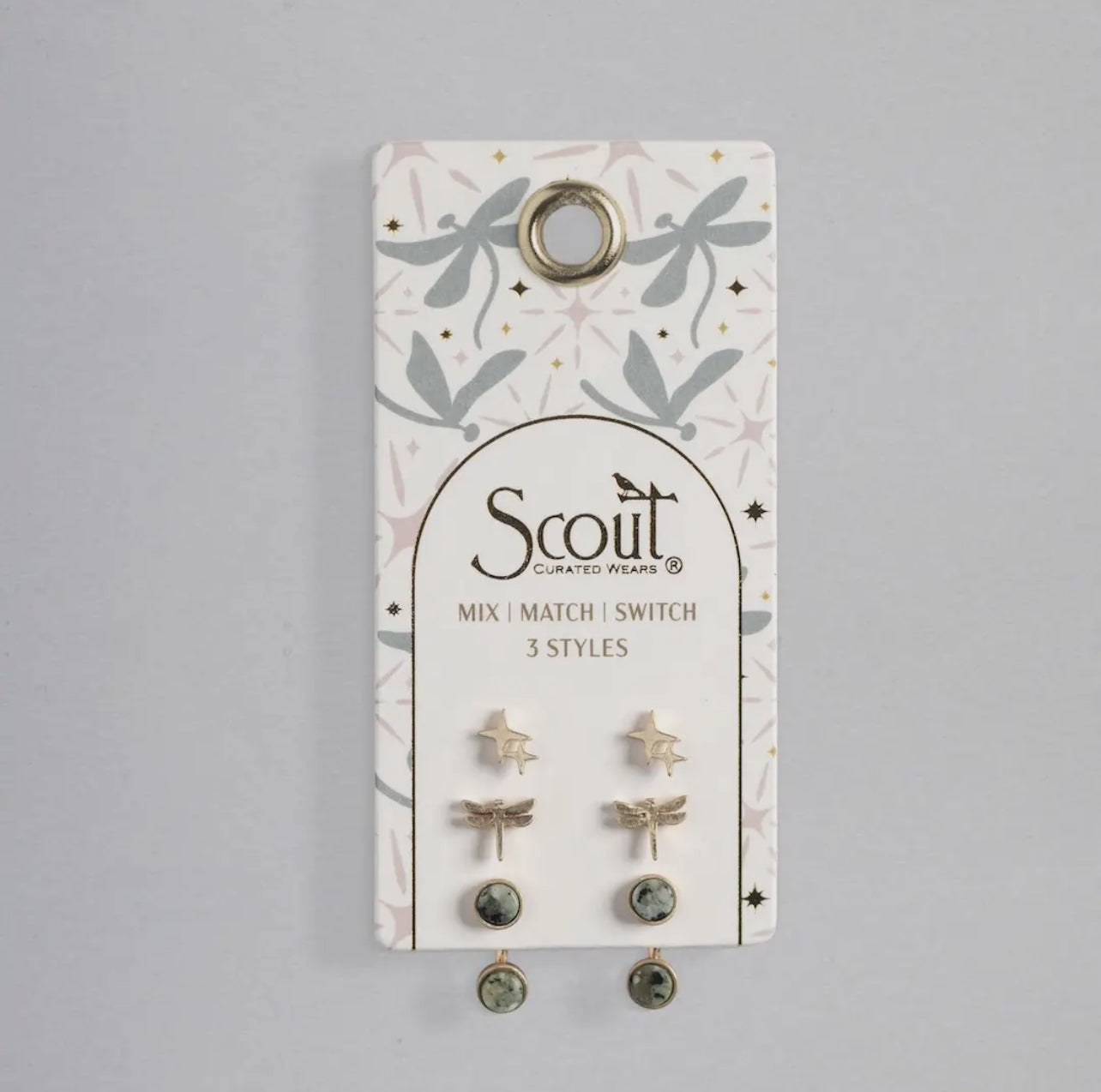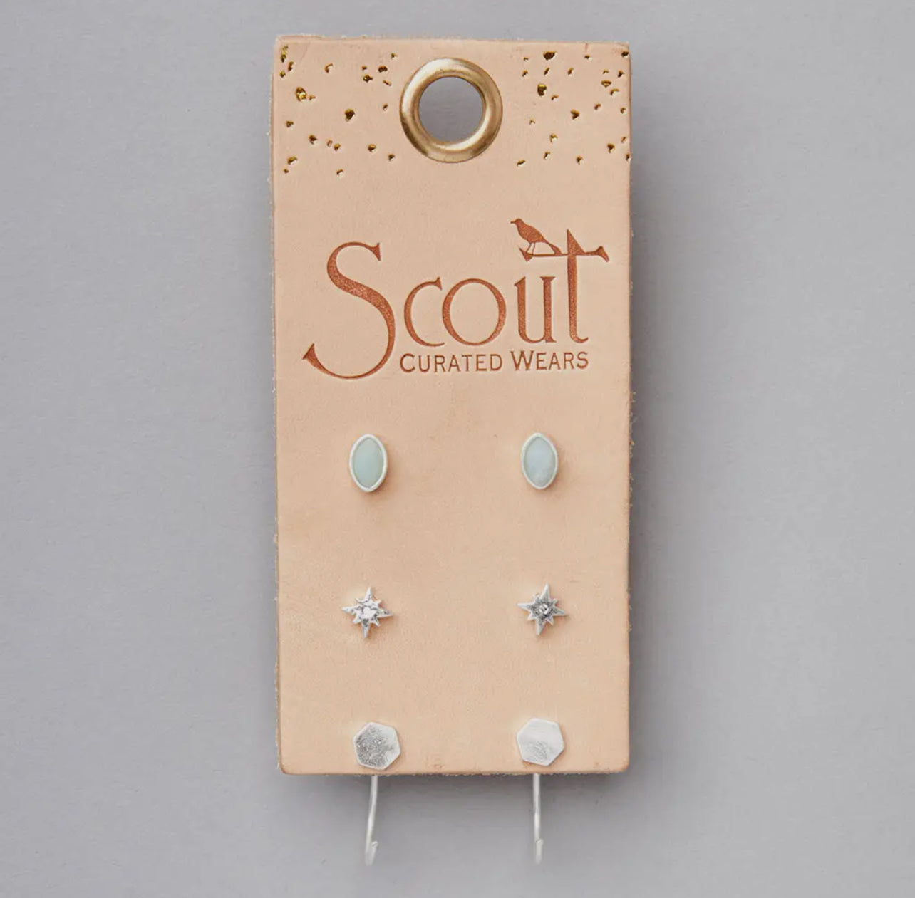 Set of 3 stud earrings that are absolutely adorable and can totally be worn together if you have more than 1 ear piercing.