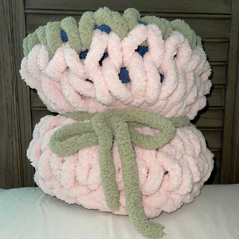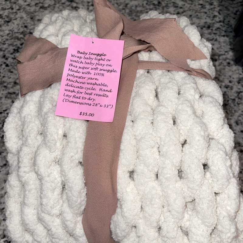 Hand Made chunky yarn baby snuggle is perfect for new babies, or even younger tots that want to carry "blanky" around.