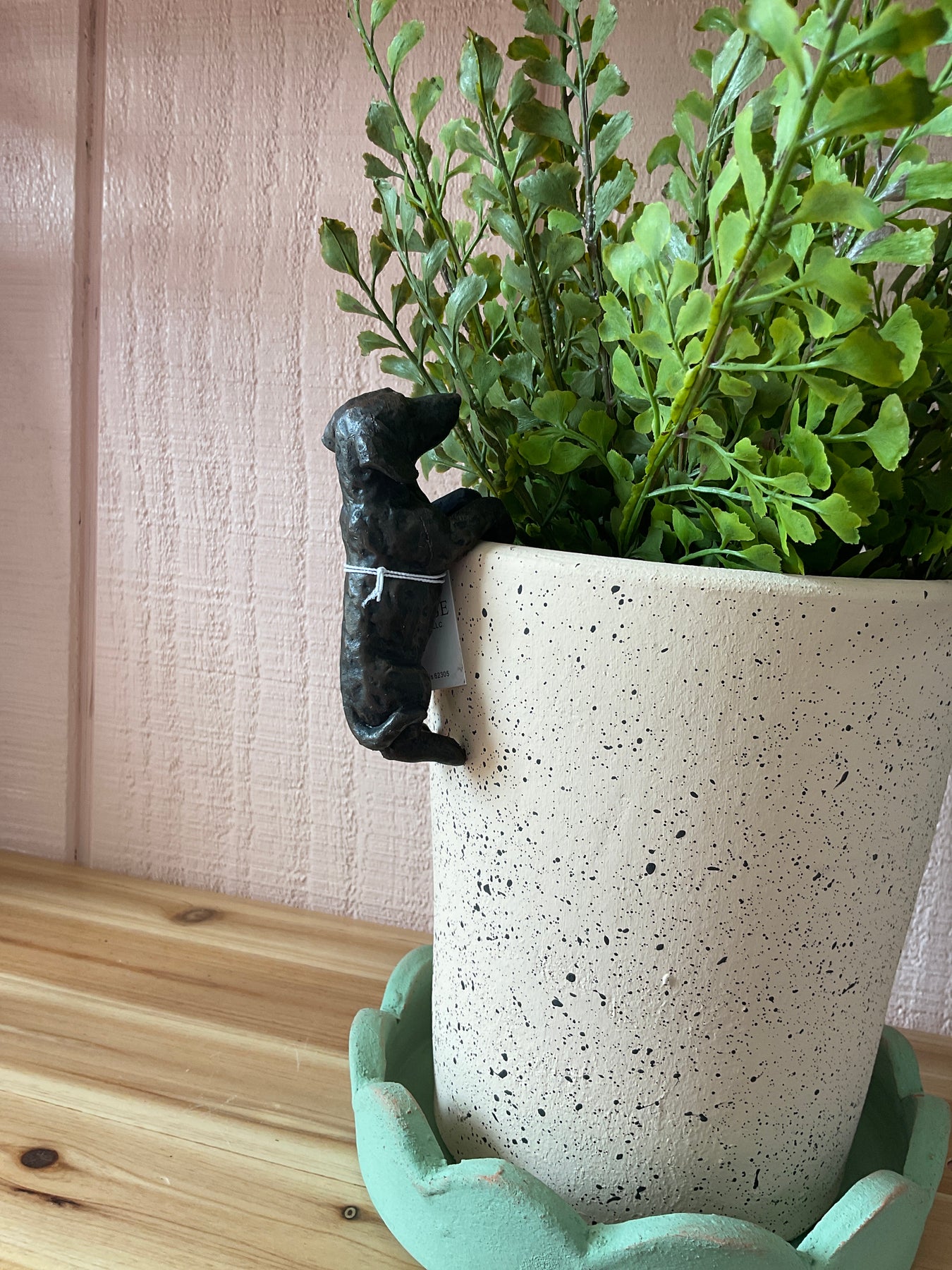 Sweet little dog pot hanger. Bow wow says the bulldog. Ruf ruff says the dachshund.