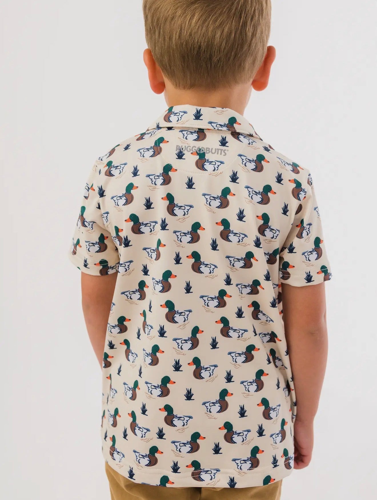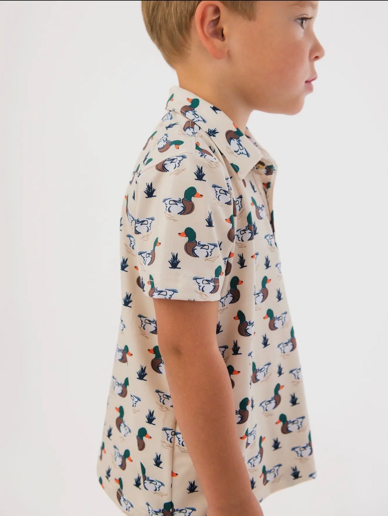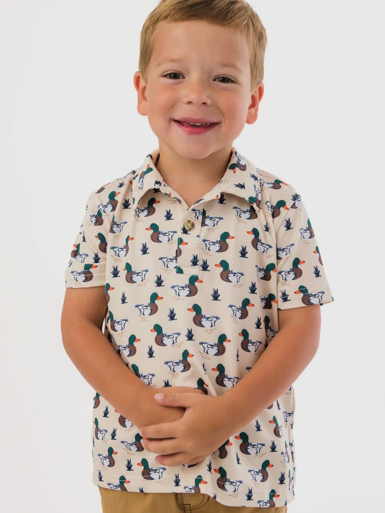 Make every outing a little more fun with our Duck Days Matching Polos—available separately in toddler/youth sizes and adult men’s sizes so Dad and his little sidekick can twin in style. This playful print features cheerful mallard ducks and reeds on a soft cream background, giving the shirts a charming, outdoorsy feel perfect for lake days, family photos, vacations, or everyday wear.