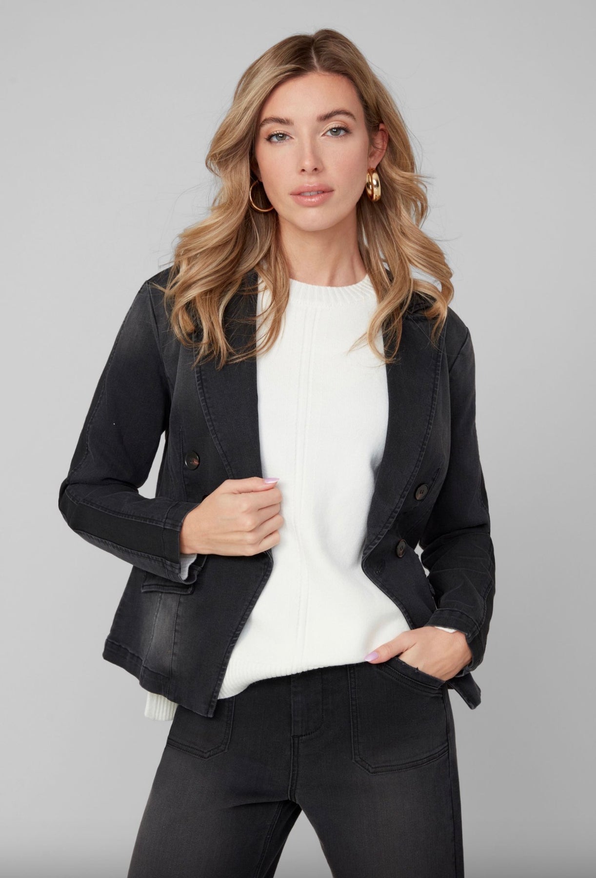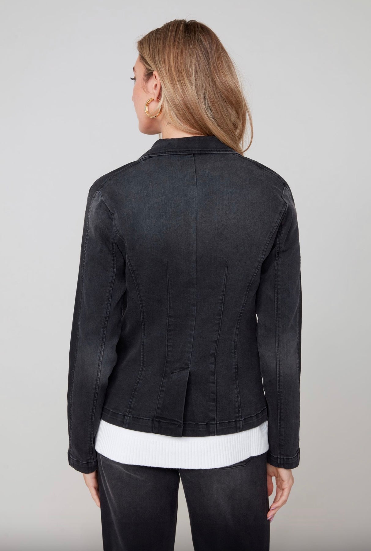 A chic twist on a classic silhouette, our Charcoal Denim Blazer combines the structure of a tailored jacket with the comfort of your favorite denim. Designed with a flattering fitted shape, front button closure, and subtle seam detailing, it offers a polished yet effortless look. Perfect for pairing with jeans or trousers, this blazer transitions seamlessly from office hours to evening outings with modern ease.