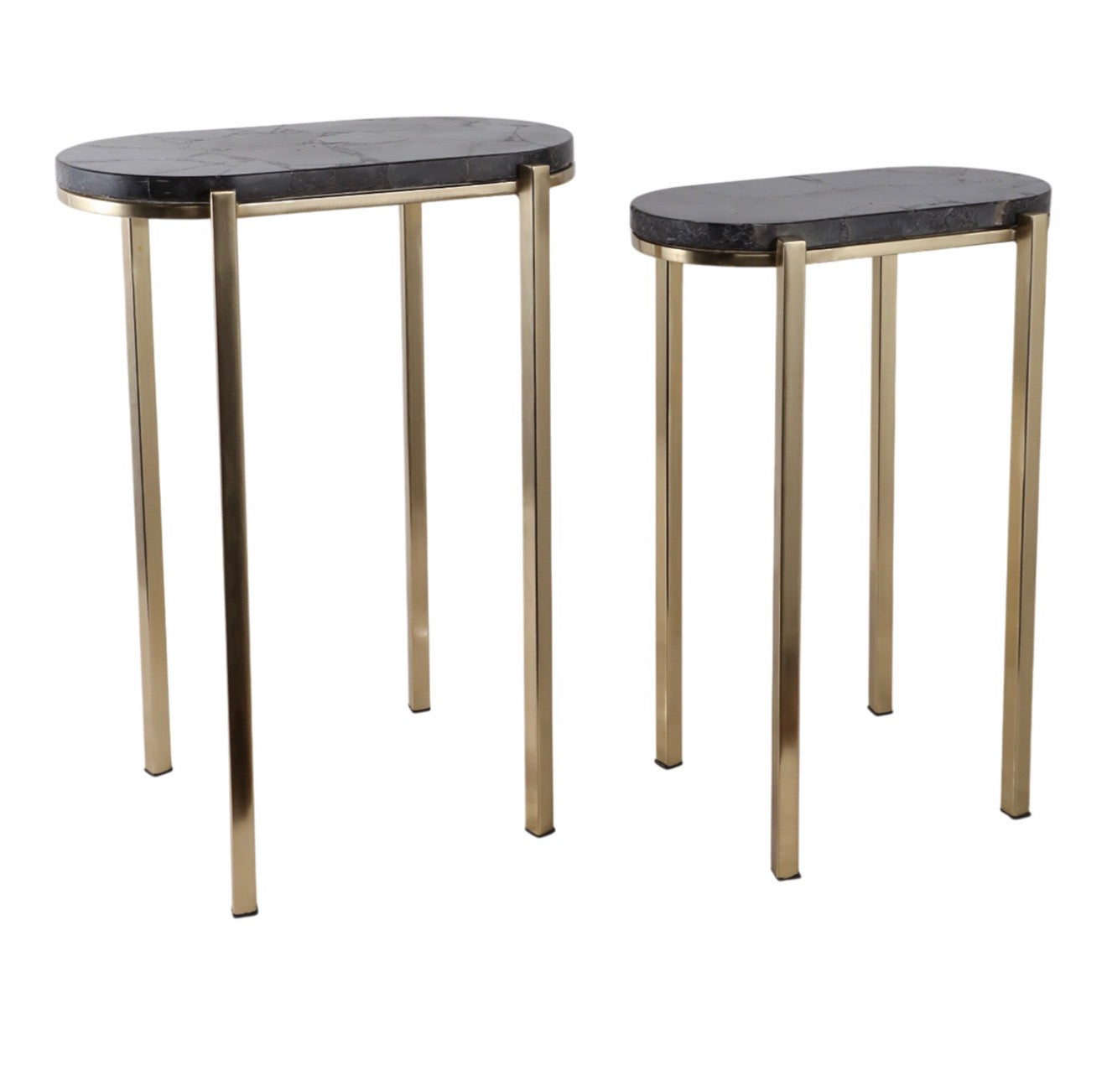 Sleek and sculptural, this black marble and brass accent table is designed purely as a decorative statement piece. The smooth, dark stone top features natural veining that gives each table its own unique character, while the slender brass legs add a refined, modern contrast. Perfect for elevating a corner, layering next to seating, or styling with décor accents, this piece brings a luxe, gallery-inspired feel to any space.