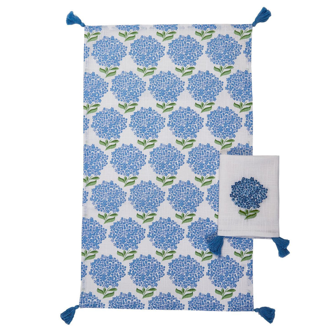 Designed in our blue and white hydrangea pattern these super absorbent dishtowels are sewn with tassels in the corners to make them a treasured kitchen accessory.