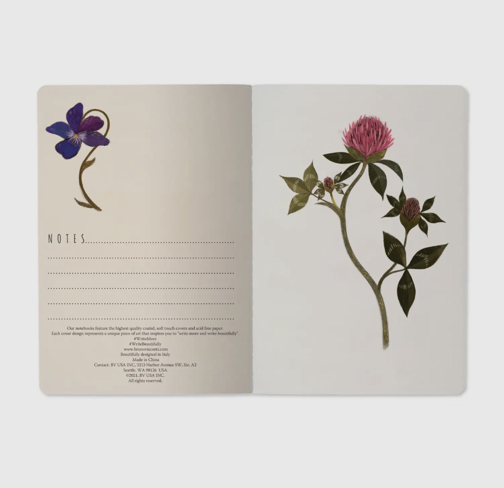 Multiple botanical designs available; each sold separately. 40 pages per notebook.