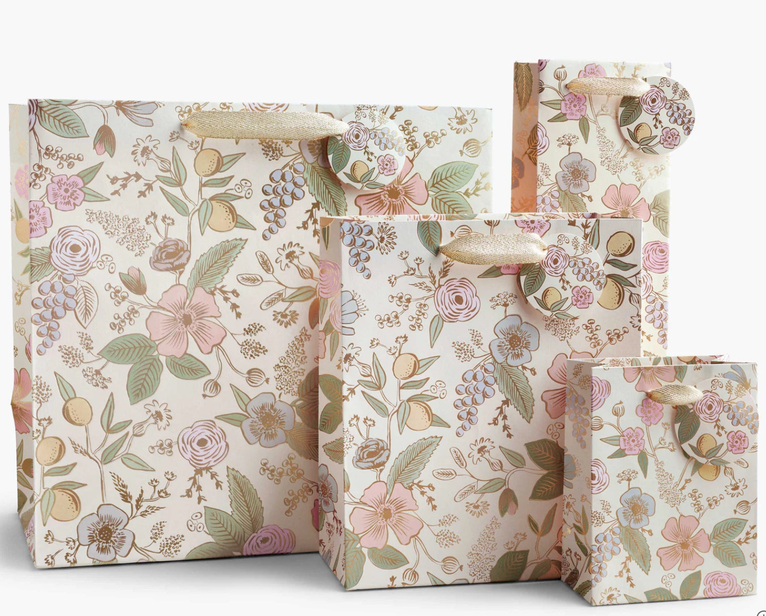 Present gifts with effortless elegance using the Colette Floral Gift Bags, featuring a soft botanical pattern accented with delicate gold detailing for a refined, timeless look. Designed from sturdy, high-quality paper with durable woven handles, these gift bags provide both beauty and reliability for birthdays, celebrations, holidays, or everyday gifting. The graceful floral artwork and muted color palette create a sophisticated presentation that enhances any thoughtfully chosen gift.