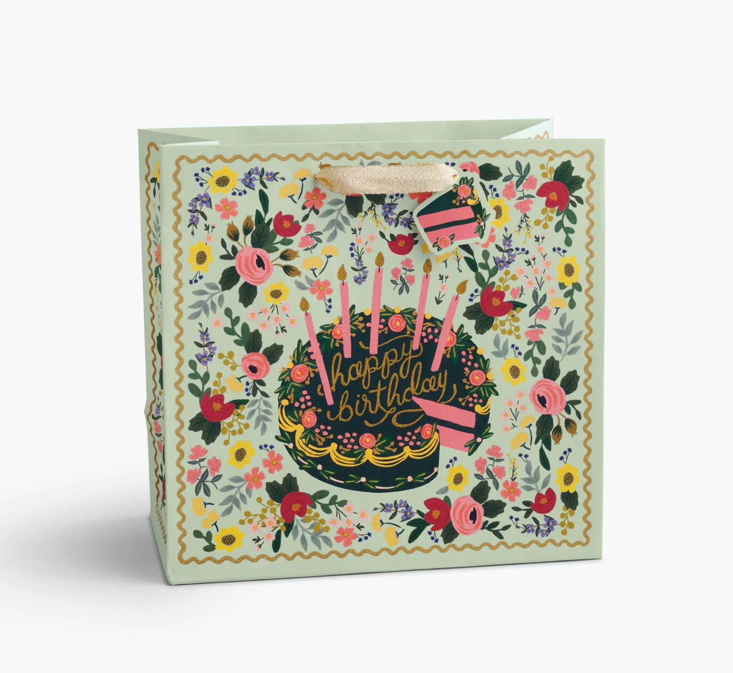 Add a festive touch to any present with the vibrant Floral Birthday Cake Gift Bag, featuring a playful pattern of colorful flowers, birthday cake, and candles set against a sleek mint background for a bold, joyful presentation. Crafted from sturdy, high-quality paper with reinforced handles, this bag is designed to hold gifts securely while making a stylish statement at birthdays, celebrations, and special occasions. Bright, cheerful, and effortlessly fun, it instantly elevates any wrapped gift with eye-catching charm.
