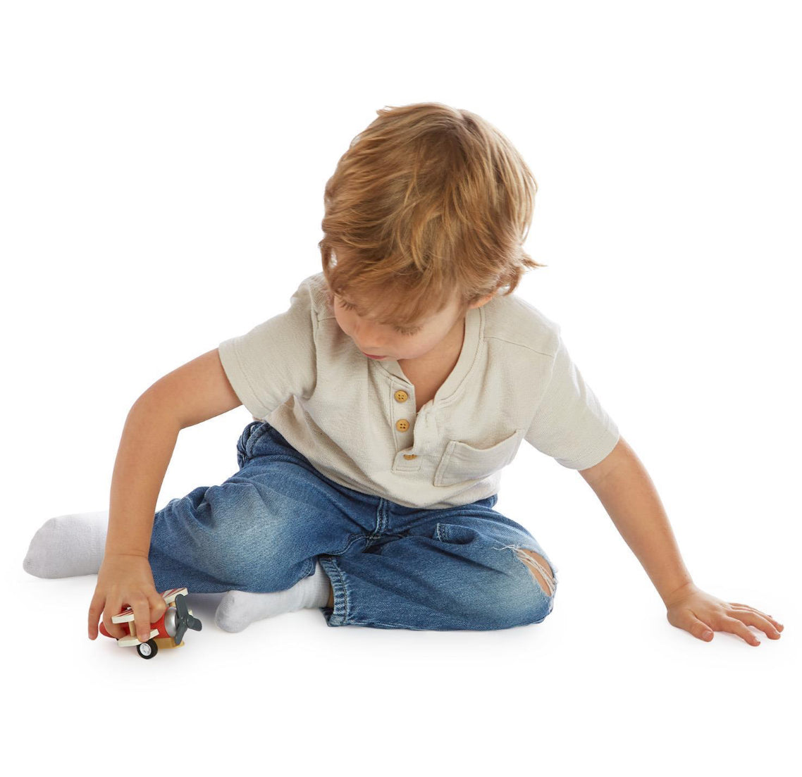 Zoom, swoop, and soar! These wooden vintage biplanes come in three bright colors and pull back for instant flight across any playroom runway. Collect them all for endless sky-high adventures.