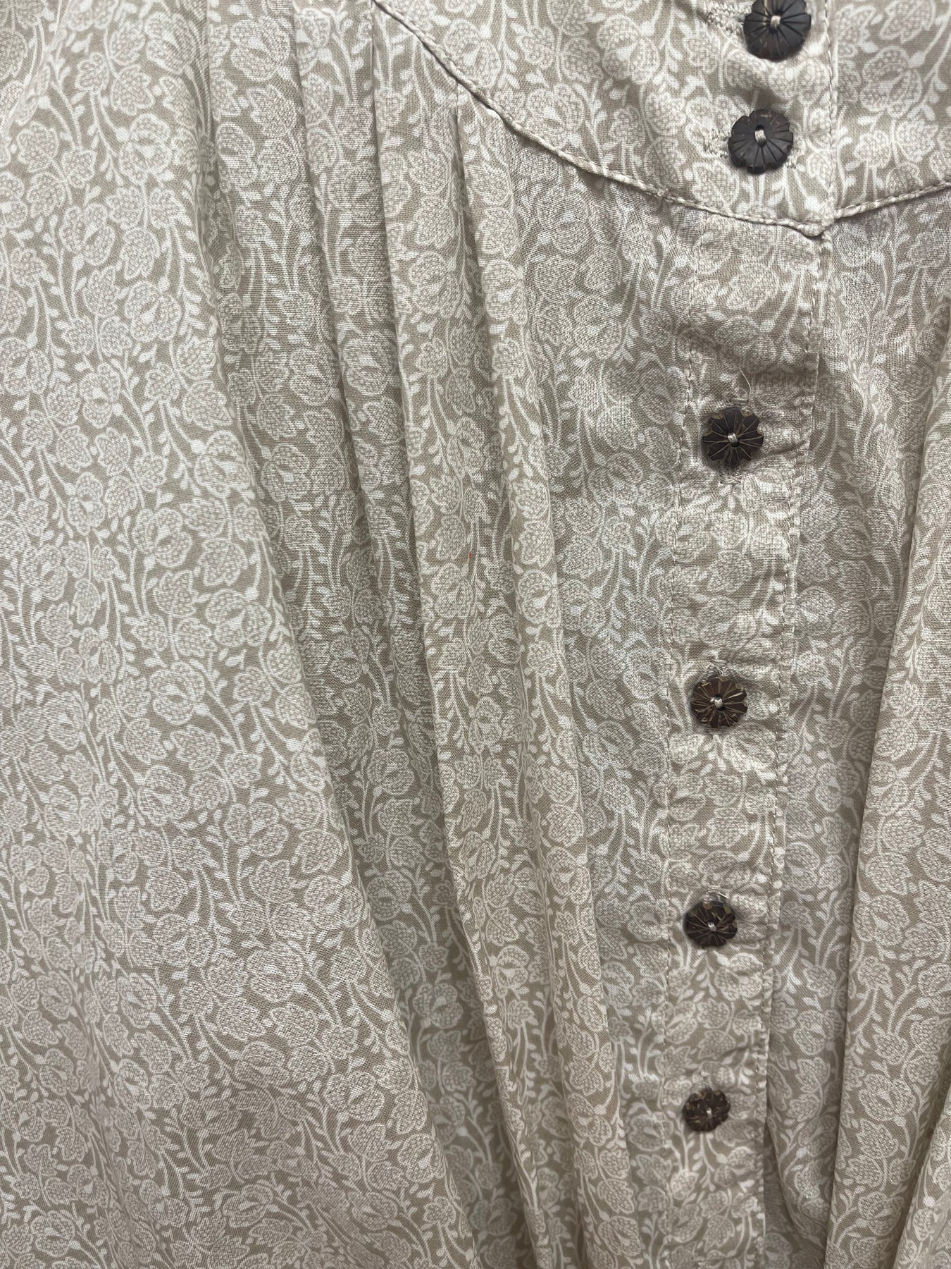 Gorgeous floral top that has the cutest flower buttons. Pair with white pants in the spring and summer and jeans in the fall and winter for a year round look. The wrap at the bottom can be tied so many different ways as well.