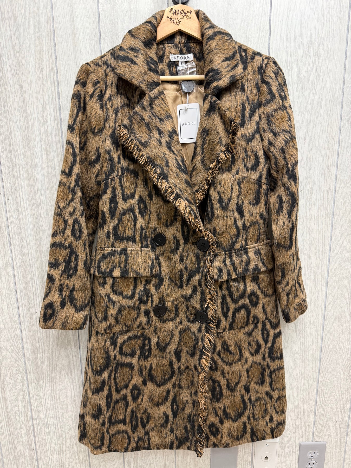 Turn every sidewalk into a runway with the Wild Ambition Leopard Coat — a fierce yet refined statement piece for the modern woman. Featuring a bold leopard print in warm, natural tones, this double-breasted coat brings instant sophistication to any outfit. The soft brushed texture and frayed lapel detail add a touch of edge, while the tailored silhouette ensures a flattering fit.