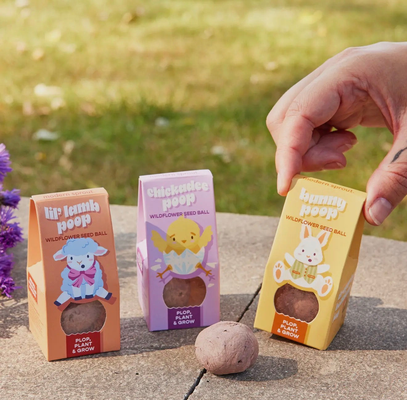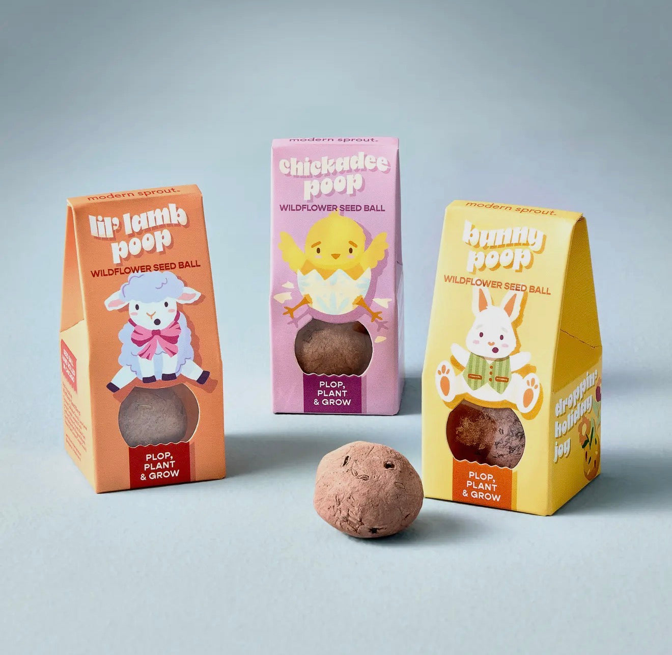 Available in three charming designs—Bunny Poop, Chickadee Poop, and Lil’ Lamb Poop—each one is listed together, sold separately, making them perfect for mixing and matching in Easter baskets, party favors, or springtime gifts. Sweet, silly, and eco-friendly, these little seed balls turn a laugh-out-loud idea into a meaningful way to give back to nature. 🌸🐝