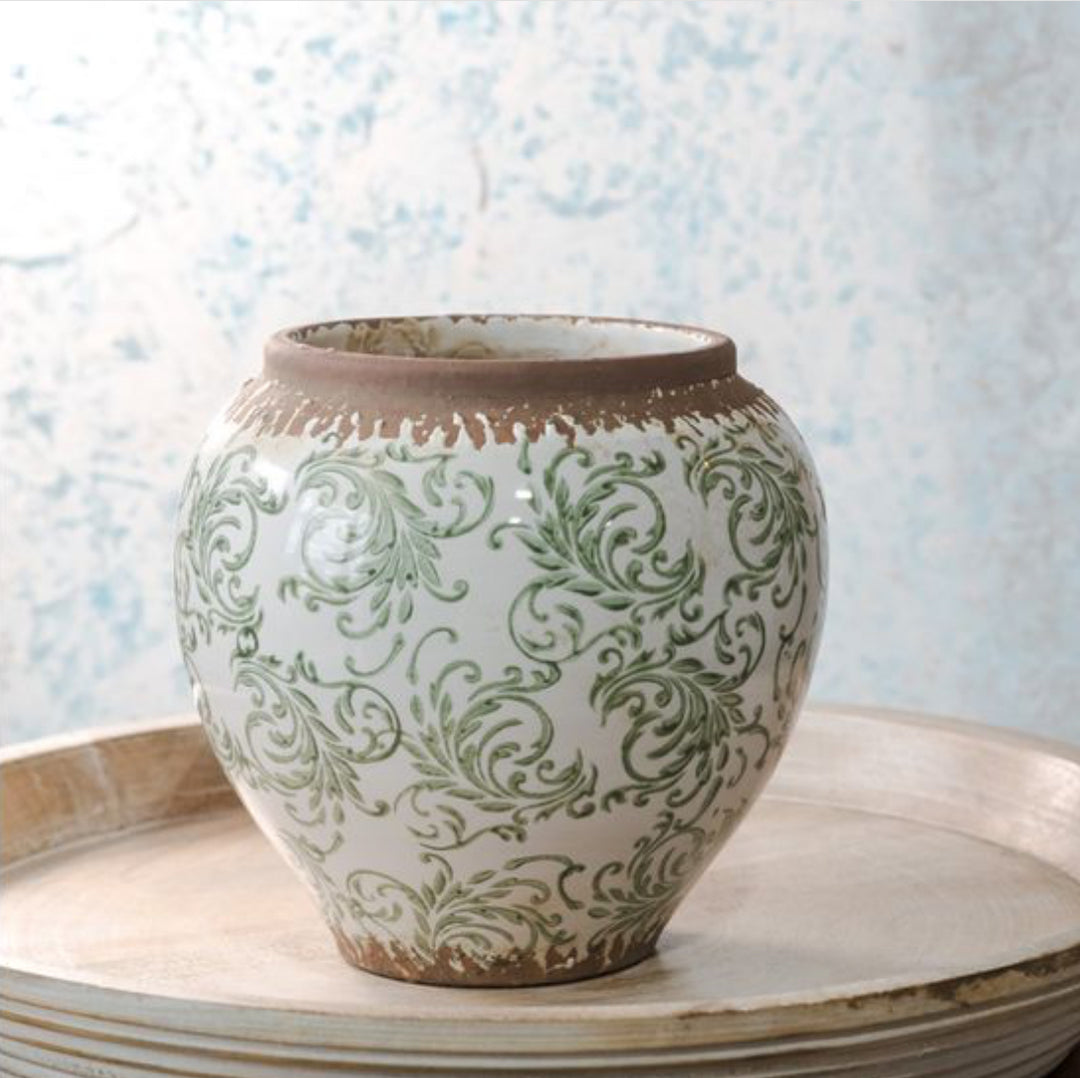 Verdant Scroll Stoneware Vase
