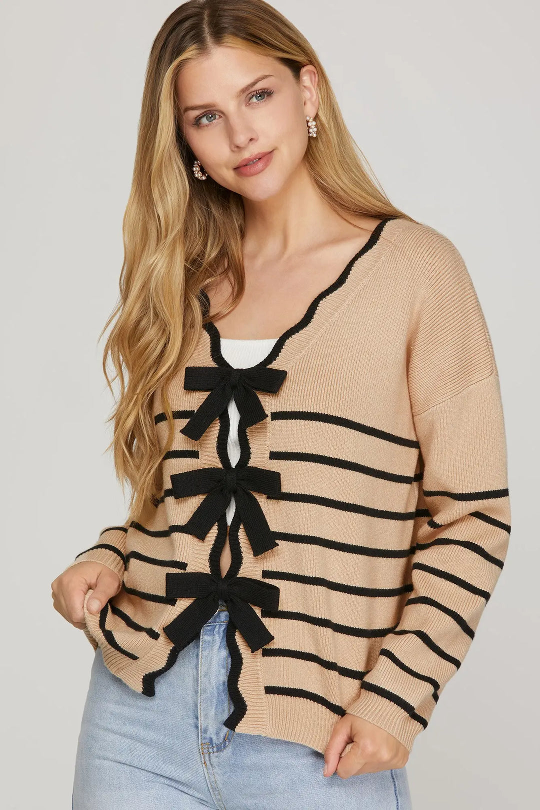 The Coquette Stripe Bow Cardigan