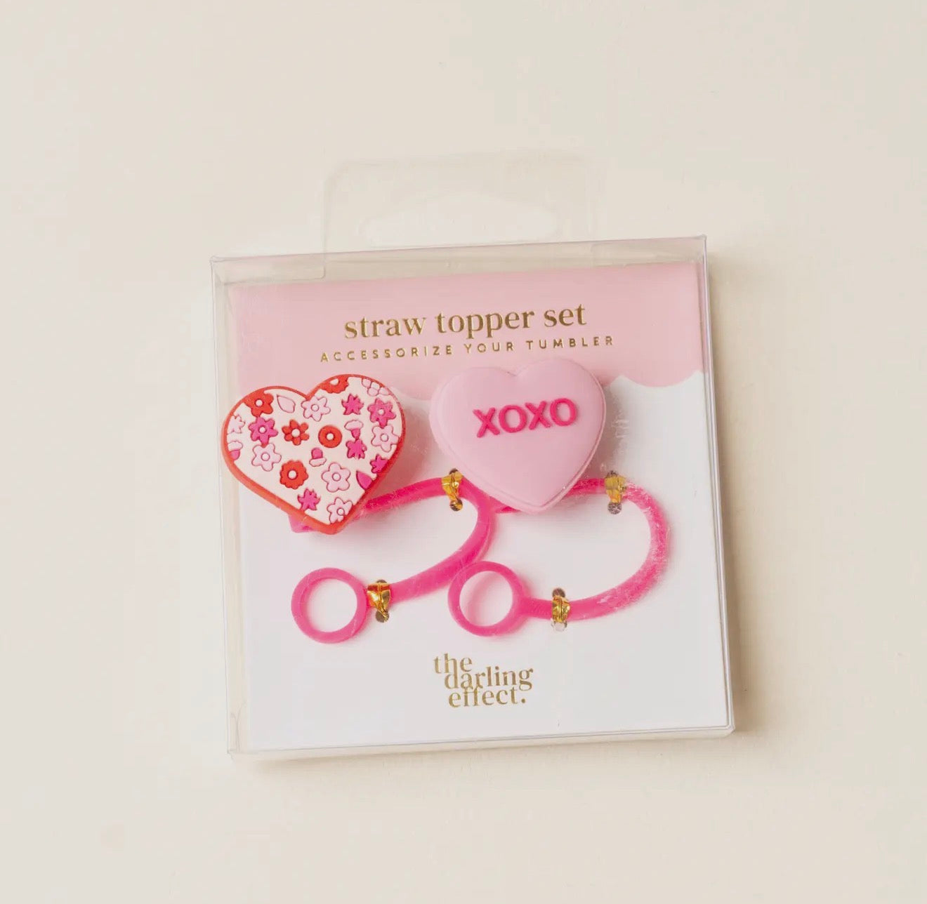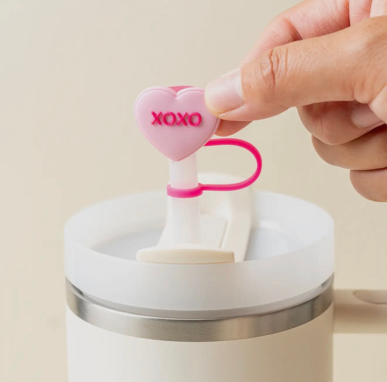 These adorable heart-shaped straw toppers add the perfect pop of charm to your favorite tumblers and drink cups. Featuring two sweet designs—one with a soft pink “XOXO” message and the other with a playful floral heart pattern—these silicone toppers easily slide onto most standard reusable straws to help keep your drink covered and clean. Perfect for Valentine’s Day, gift baskets, party favors, or everyday use, they’re a fun and functional accessory that adds a little love to every sip. Straw not included.