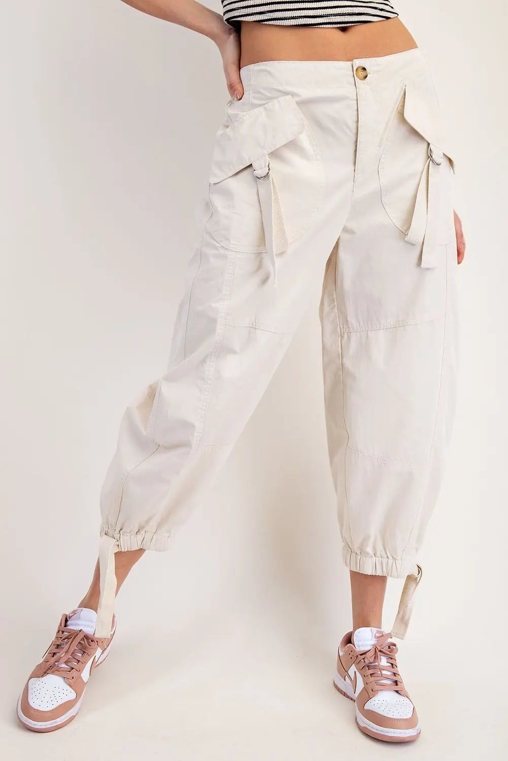 Effortlessly cool with a street-meets-casual edge, The Cargo Crush Joggers are your new go-to for laid-back style with attitude. Designed in a soft off-white neutral, these joggers feature a flattering mid-rise fit with a button front and an elastic back waistband for all-day comfort.