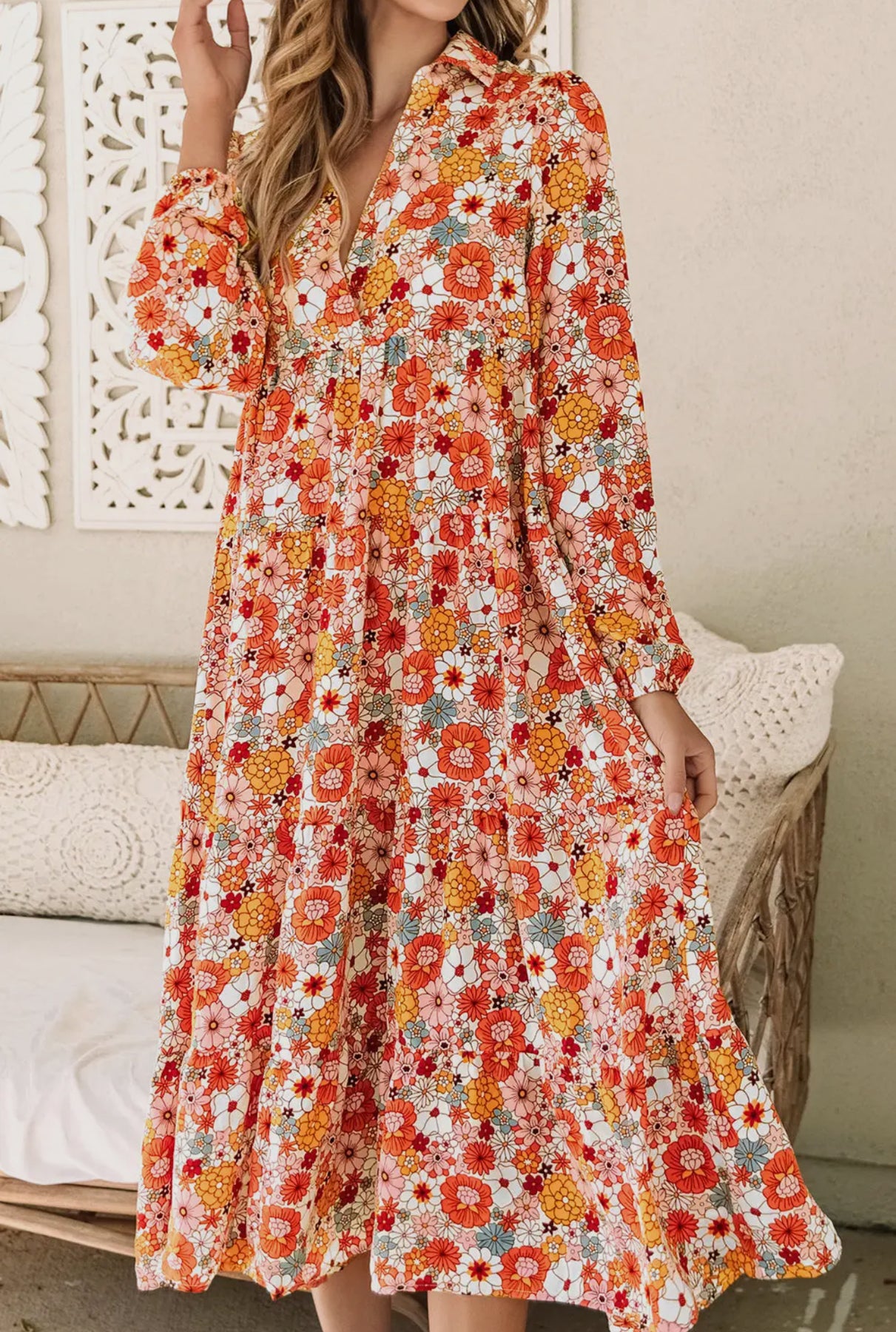 Barbara Floral Collared Ruffle Dress