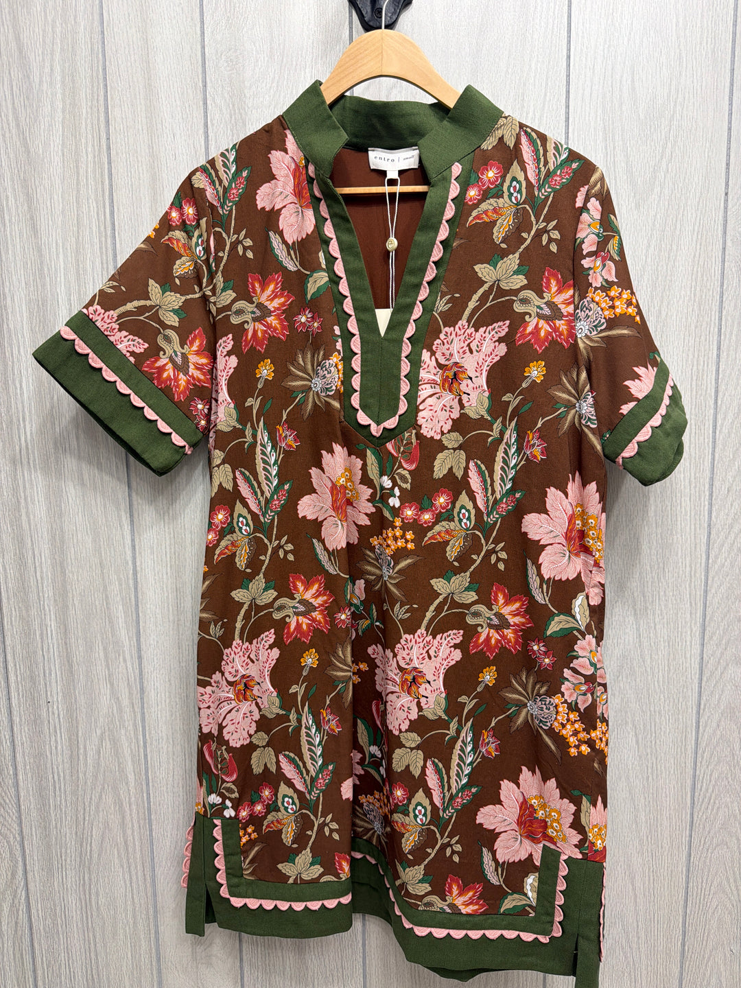 Autumn Botanical Ruffle Sleeve Maxi Dress
