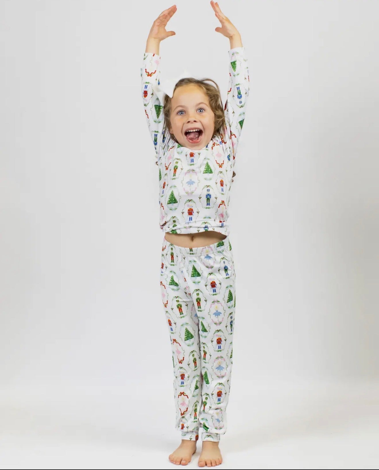 Celebrate the magic of the season in our Nutcracker Waltz Family Pajamas! Featuring a whimsical holiday print of nutcrackers, Christmas trees, and festive garlands, these buttery-soft pajamas make every cozy moment feel extra special. Available for the whole family—from toddlers to adults—so everyone can match in merry style.