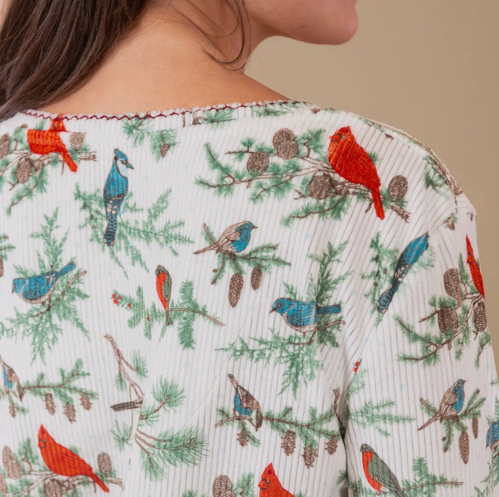 pants and shirt sold separately so you can get the sizes that you need for the ultimate comfort. The shirt features a beautiful v-neck design that is flattering and feminine. The pants are extra comfy and ready for lounging all winter long.