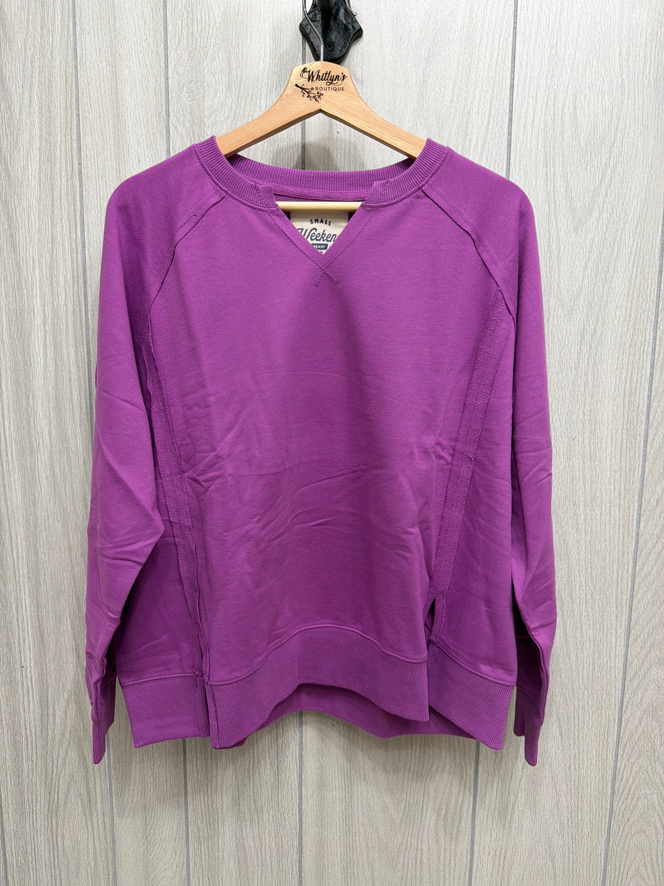 Kick back in effortless comfort with our Weekend Ready Sweatshirt! Crafted in a rich orchid hue that adds the perfect pop of color, this relaxed-fit pullover is designed for cozy days and casual outings alike. Featuring soft, breathable fabric, a split V-stitch neckline, and subtle side slits for easy movement, it’s your go-to layer for laid-back style.