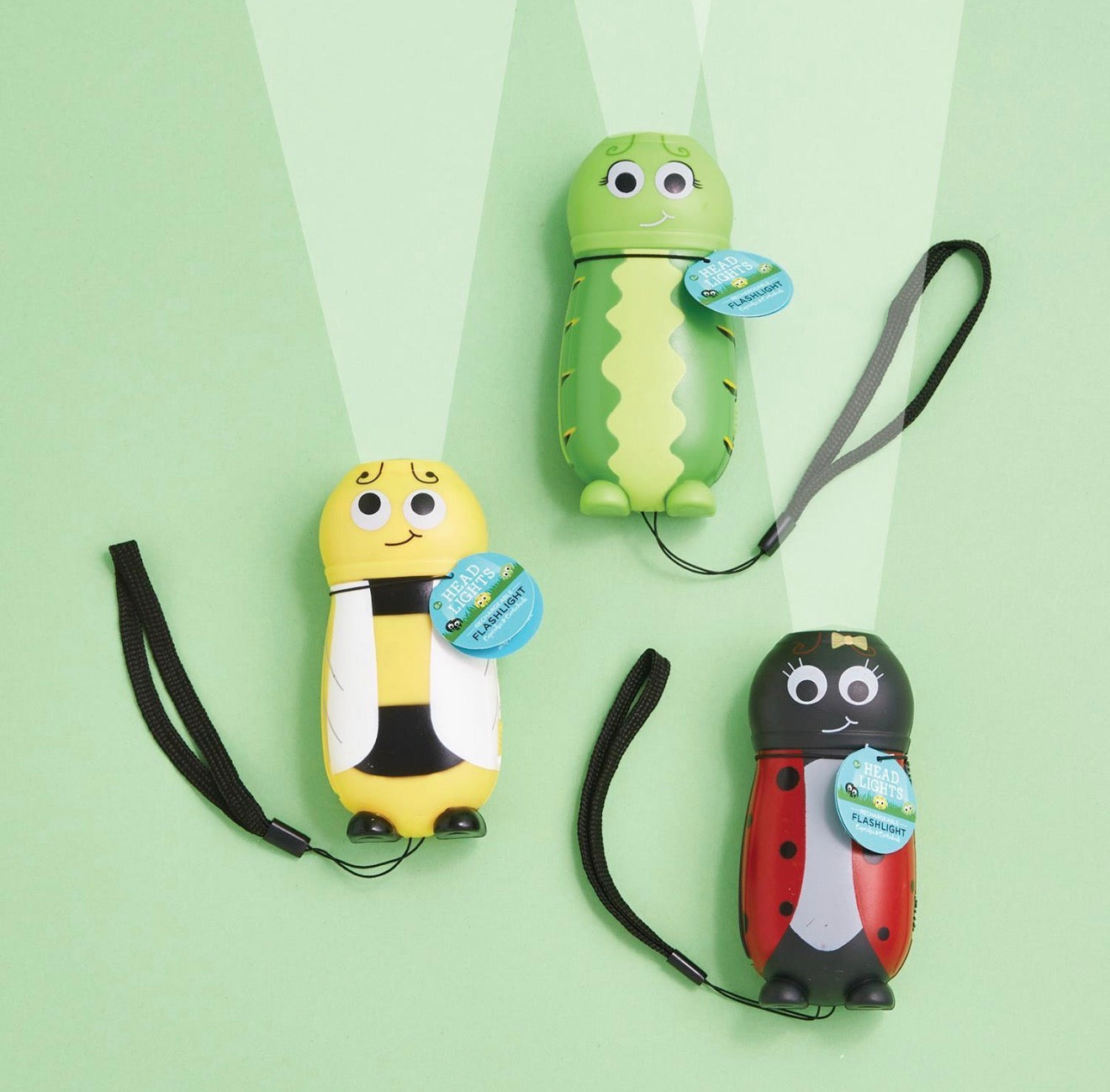 Light up the fun with these adorable kid-friendly flashlights! Each one features a cheerful insect design — choose from Bumblebee, Ladybug, or Caterpillar — with a comfortable kid-sized handle that’s perfect for little hands. The built-in wrist strap makes it easy to take on backyard adventures, camping trips, or bedtime story explorations.