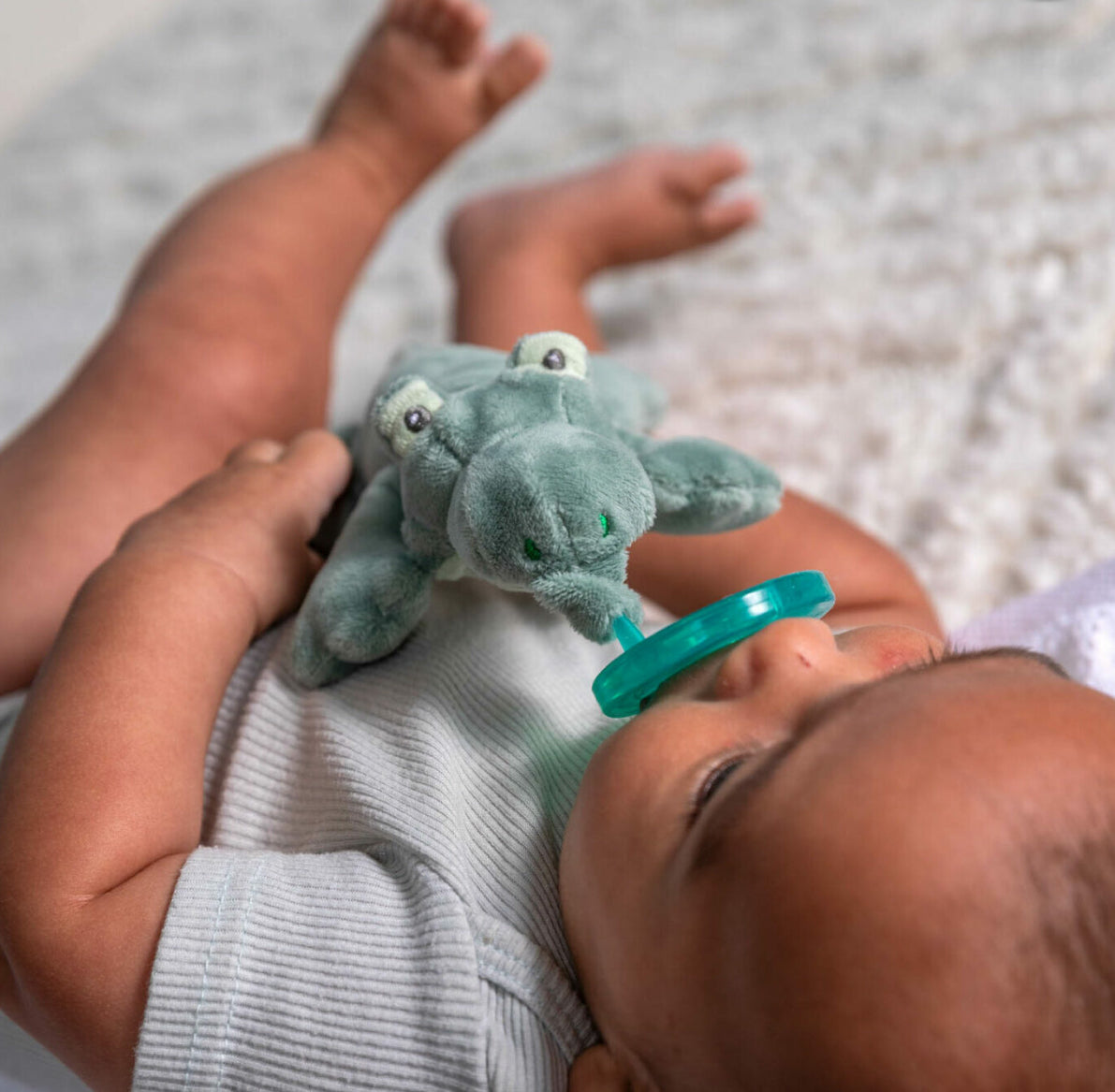 Solve the missing pacifier issue with these wubbanubs. The animal is attached, so it’s less likely to go missing. The animal is soft and the paci is made from food grade silicone that’s free from BPA, Latex, and phthalates.